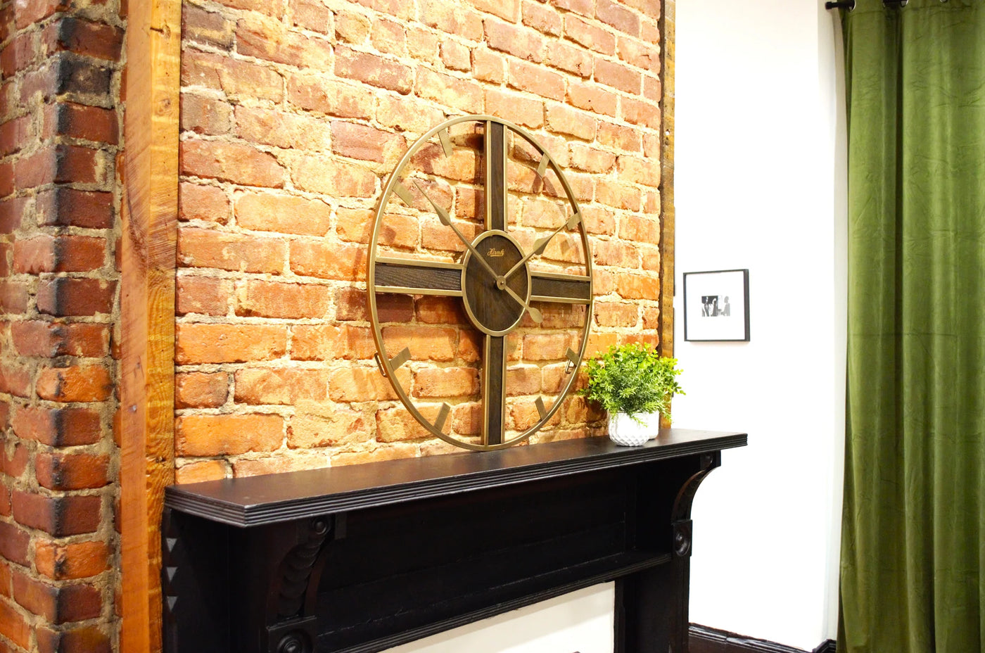 Make a statement with our gold and wood tone wrought iron gallery clock. This item brings style and features a quartz time only movement.